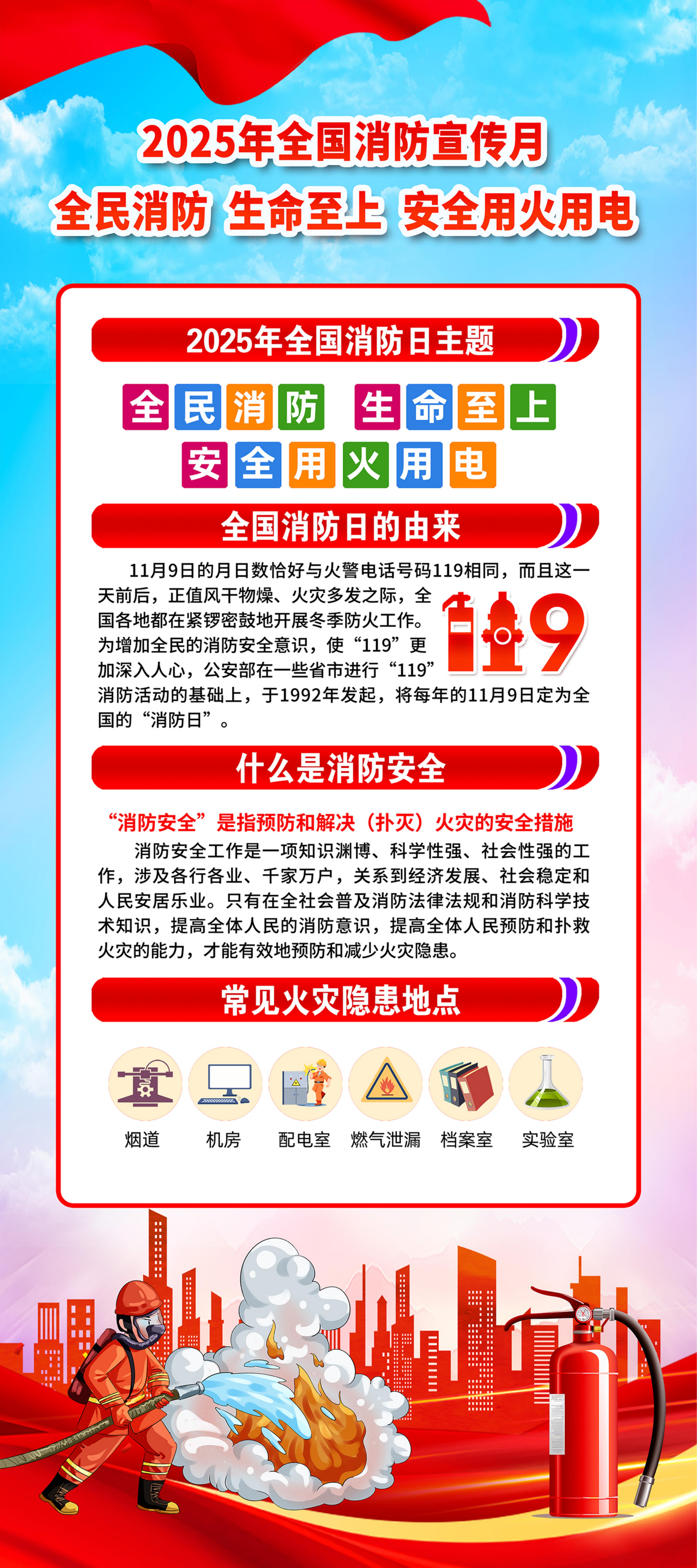 2025年消防宣傳月(全民消防、生命至上---安全用火用電)